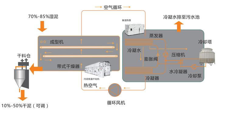 一、降溫除濕熱泵 汽車制造廠污泥干化機(jī)工藝流程