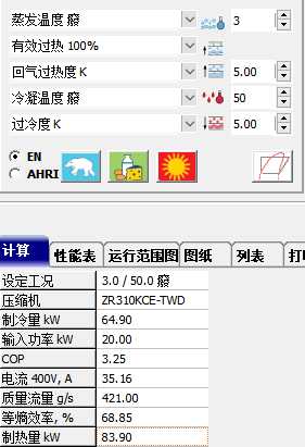 此方案下單臺壓縮機選型: