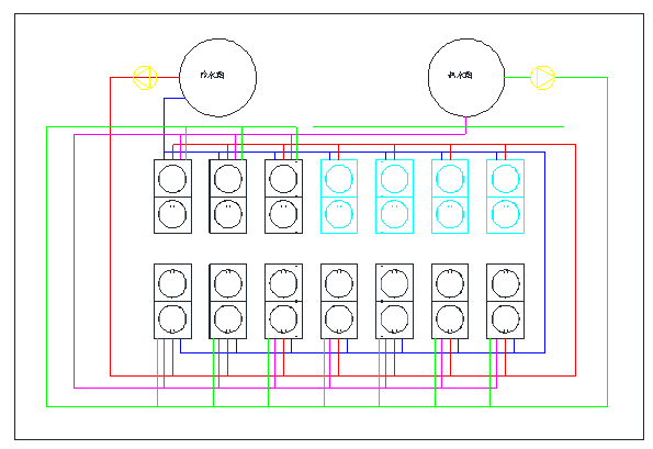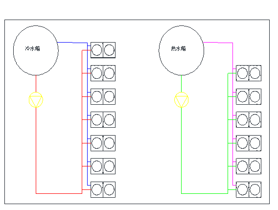 2.1:簡單的方案就是制冷機組和制熱機組分開,各管一邊,互相之間不影響。此時需要配7臺50匹的制冷機組和6臺50匹的制熱機組。