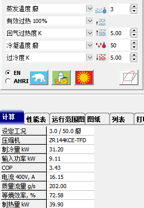 2.2考慮到實際的使用情況,我公司給客戶開發(fā)設(shè)計了制熱帶冷回收功能的空氣源熱泵,機組滿足制熱的需求配置,同時能制冷產(chǎn)生冷水,其中不足的制冷部分通過制冷機組補足,尤其考慮到浙江全年的溫度變化,尤其是冬季制熱實際需要的能力都會大于制冷的需求。結(jié)合設(shè)備生產(chǎn)的情況,因此我公司給該公司配置了12臺25匹制熱帶冷回收熱泵,以及4臺25匹制冷機組。