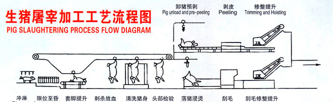 (2)、屠宰與分割車間根據(jù)生產(chǎn)工藝流程的需要,在用水位置應(yīng)分別設(shè)置冷、熱水管。清洗用熱水溫度不宜低于40℃,浸燙池水溫應(yīng)根據(jù)豬的品種和季節(jié)進(jìn)行調(diào)整,調(diào)節(jié)范圍宜取58℃~63℃。消毒用熱水管出口處宜配備溫度指示計。