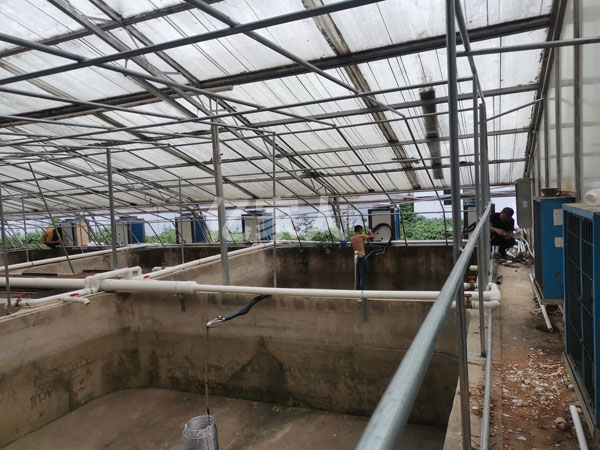 在水產養殖的應用中,空氣能熱泵并不是直接給養殖用水加熱。經空氣能熱泵變熱后的水,經過鋪設在魚池中的換熱器用熱傳遞的原理使養殖水體慢慢升溫。