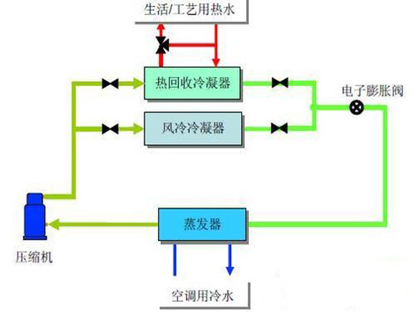 制冷熱回收熱泵技術(shù)是一種利用水源(工業(yè)制冷水、地?zé)嵛菜龋┑牡蜏氐臀粺崮苜Y源, 采用熱泵原理,通過少量的高位電能輸入,實現(xiàn)低位熱能向高位熱能轉(zhuǎn)移,既可供熱又可制冷的效率高、綠色低碳、節(jié)省能源的系統(tǒng)。在制熱的時候以水作為熱源,在制冷的時候以水或空氣作為排熱源。制冷熱回收熱泵叫水源熱泵機組即可,設(shè)備的大小和數(shù)量視建筑物的規(guī)模和用途進(jìn)行選。